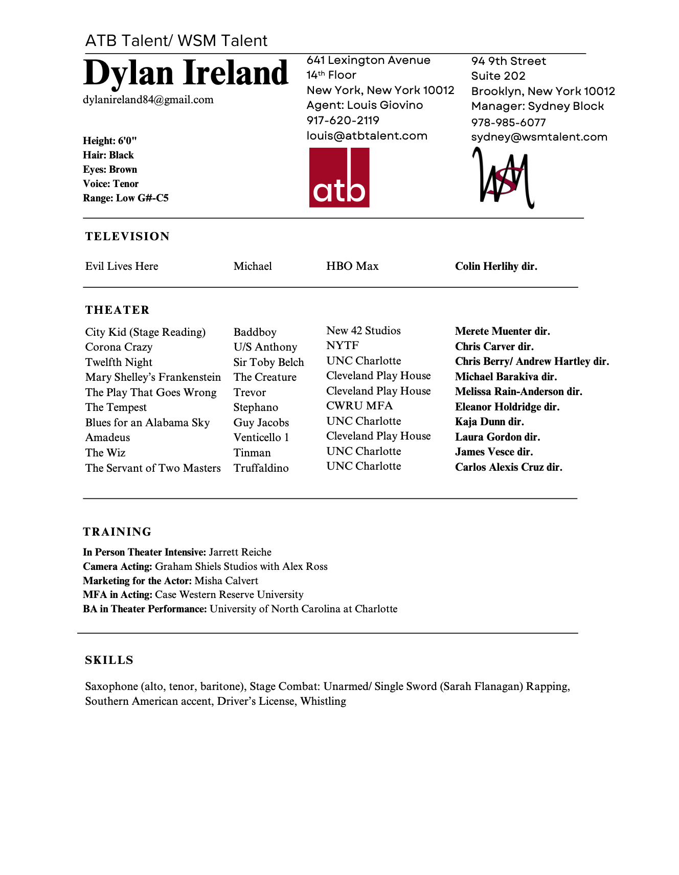 I’m a NYC based actor with an MFA in Acting from Case Western Reserve University in Cleveland, OH.